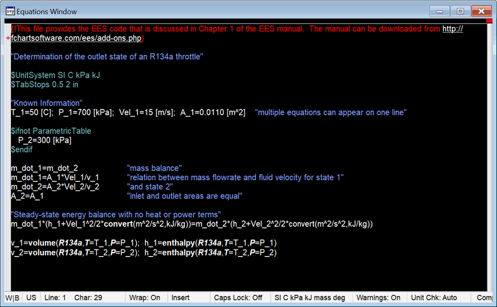 Directives are instructions to EES. Although they appear in the Equations window, they are not equations. The color and style of directives can be specified. The default is a teal color with plain font.