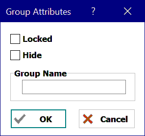 Groups have three attributes that may be useful. To access the attributes, either double-click on a group or click the right-mouse button and select Properties from the pop-up menu. Either method will bring up the Group Attributes dialog.