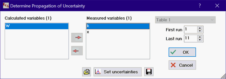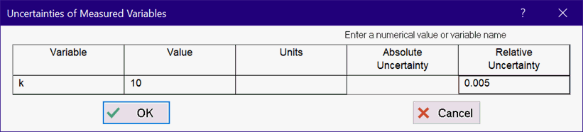 Click the Set uncertainties button and enter the uncertainty for each value of k.