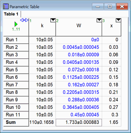 Click OK on both dialogs. The uncertainty calculations will proceed and the Parametric table will be filled out as shown.