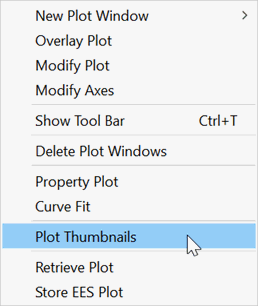 The Plot Thumbnails window can be accessed in the Professional license when an EES file contains two or more plots. The window displays thumbnails of all of the plots in the EES file, as shown in the example below.
