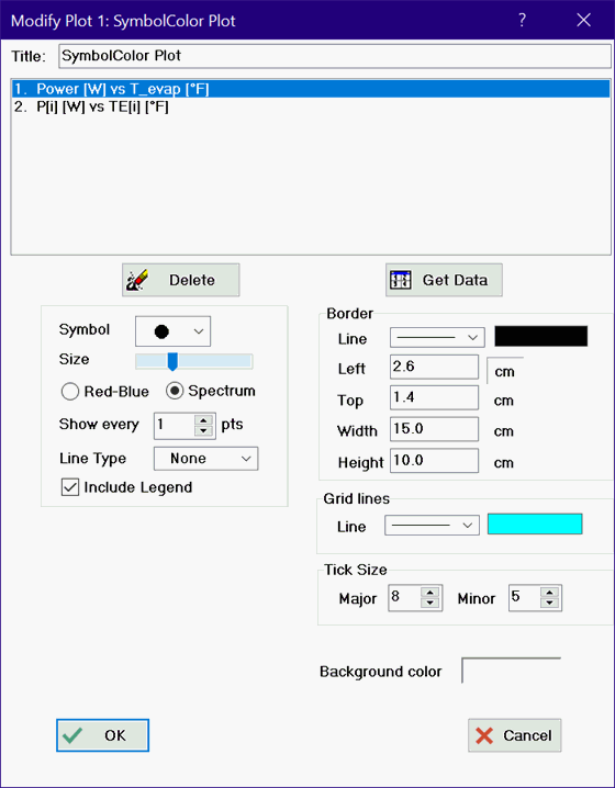 Right clicking or double-clicking on a Symbol Color plot will bring up the following dialog that can be used to change the appearance of the plot.