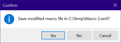 If the macro file is set to be saved in an external .emf file and f any changes have been made to the macro file since is was last saved, you will be prompted to save the file.