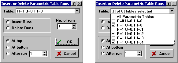 Insert/Delete Runs allows the number of runs in one or more selected Parametric Tables to be changed by inserting or deleting one or more rows at a specified position.