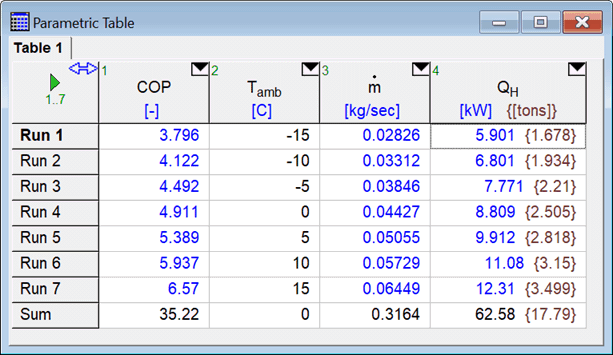 The sum, average, standard deviation, minimum and maximum of the values in the selected column are displayed in the Statistics box. The values in these boxes can not be edited, but they can be copied. If a column holds the results from an Uncertainty Propagation Table command, the Sum field will display the sum value along with the uncertainty of the sum calculated as the square root of the sum of the squares of the uncertainty values in the column. Note that the sum of values in a Parametric table column is displayed when the "Include a Sum Row in the Parametric Table check box is selected in the General tab of the Preferences dialog. Also, the SUMPARAMETERIC and SUMLOOKUP functions return the sum of the values in the Parametric and Lookup tables, respectively.