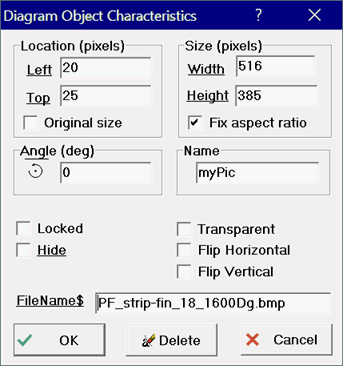 Shown below is the Diagram Object Characteristics dialog as it appears for a picture.