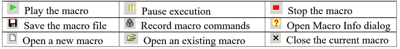 The Macro Window provides a toolbar on the right side of the window with nine buttons. These buttons have the following functions.