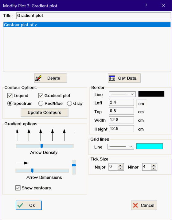 Right clicking or double-clicking on a contour or gradient plot will bring up the following dialog that can be used to change the appearance of the plot.