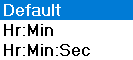 Default sets the output to the short time string format that has been set in the Windows Operating system.  You can change this format using the Control Panel for Region and Language. The other formats provide a format with hours (0 to 23), minutes, and optionally, seconds.  The stored decimal value is in hours.  Units need not be specified for a variable in Time format, as its units are internally set to be hours.